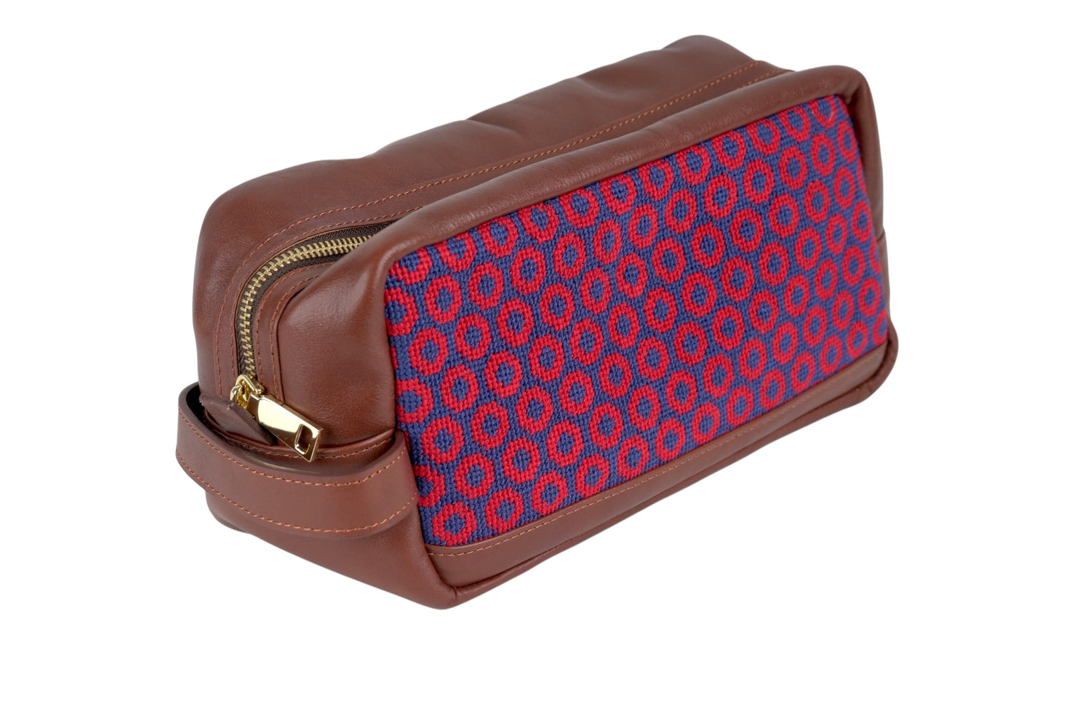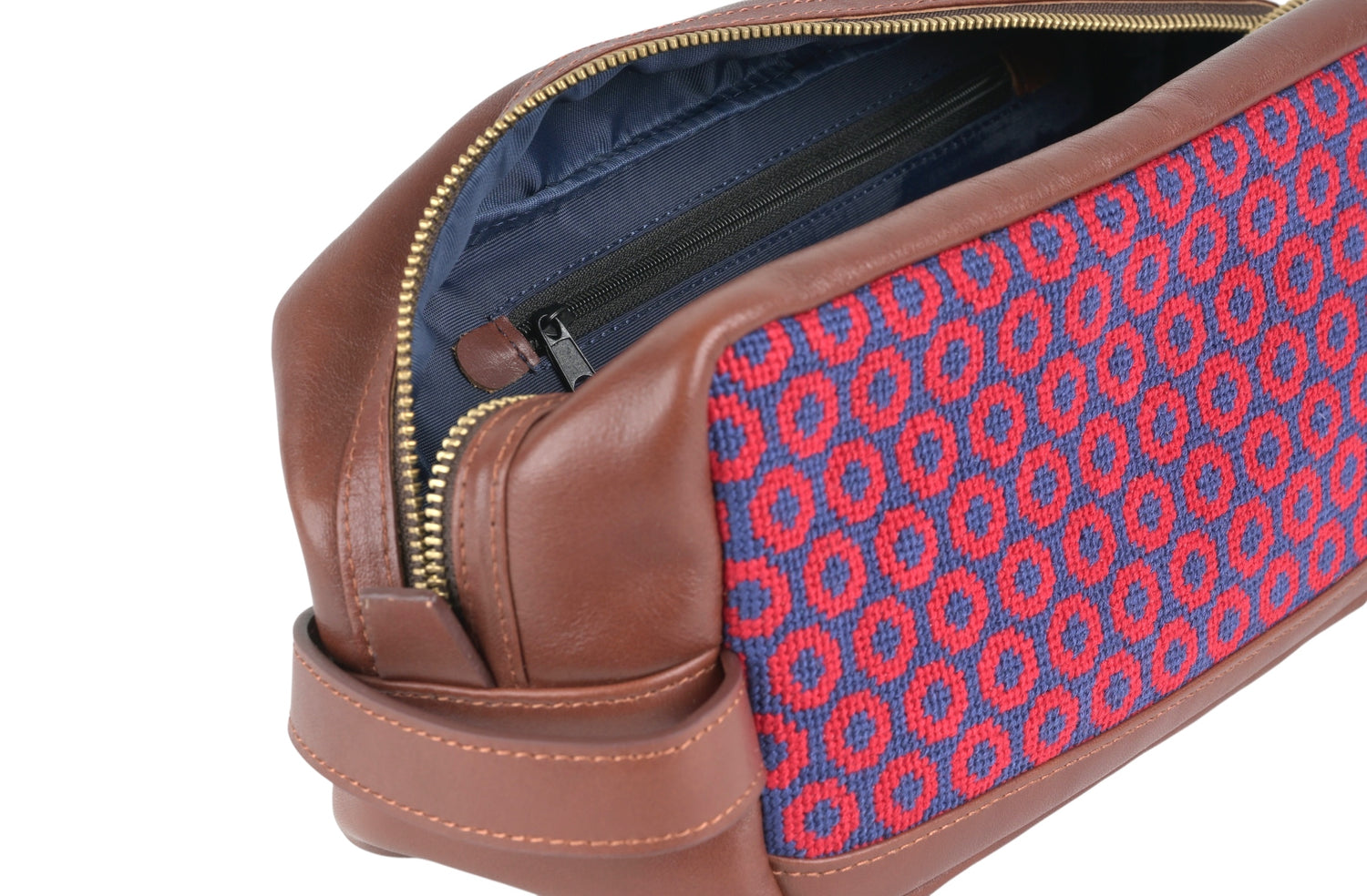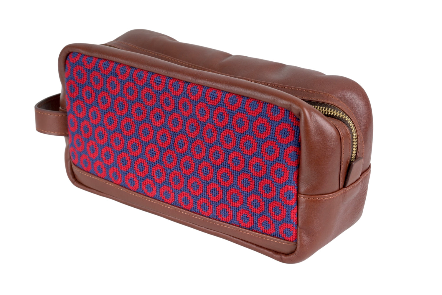 The ultimate travel accessory to help you stay organized on the go. Crafted with full grain leather, lined with water repellent nylon and finished with signature hand stitched needlepoint.