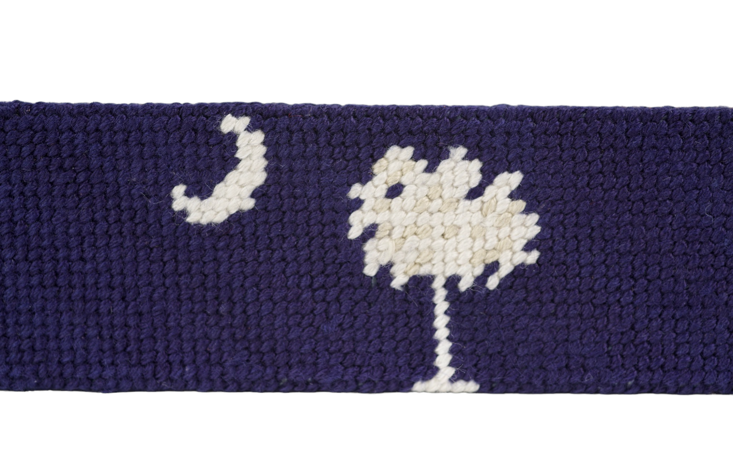 Palmettos, Sweet Tea, Barbecue and great golf. It's no wonder South Carolina is high on our list of places to visit whenever possible. Thankfully we can put this belt on and feel like we've never left. Navy with South Carolina Flag.